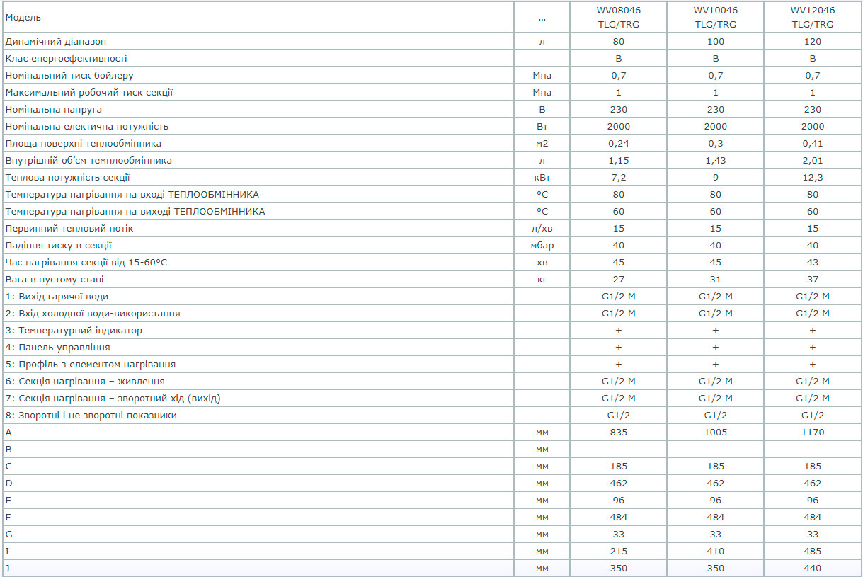 Технічні характеристики бойлерів Eldom Thermo: