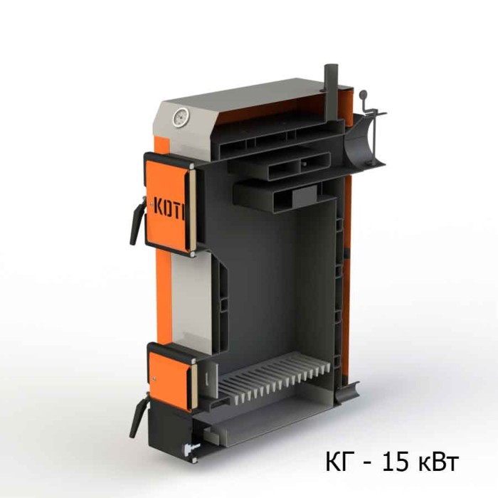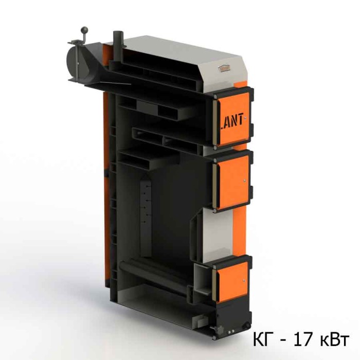 Котел КГ 15 кВт має 2 конвектаційні канали в теплообміннику, 16-17 кВт – 3 канали, а 18-50 – 4 канали.
