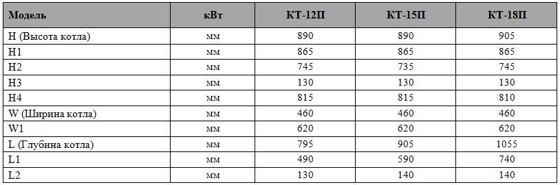 | Модель котла | КТ-12П | КТ-15П | КТ-18П | |