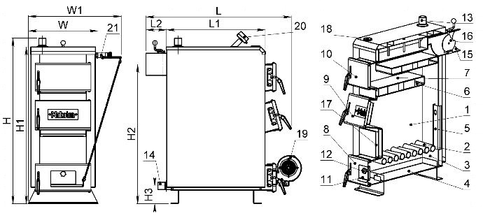 *опційно котел може бути укомплектований механічним регулятором тяги або електронним блоком управління з вентилятором.