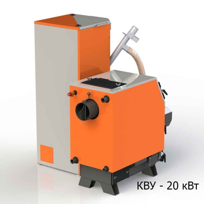 Дана модель розроблена на основі котла Котлант КВУ, з доукомплектуванням автоматичної пальто, спеціальної автоматики для пальника, та бункера для пелета.