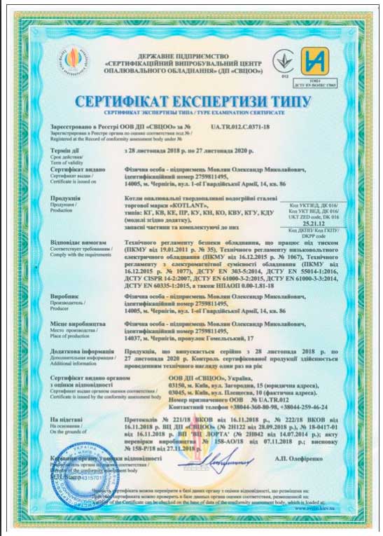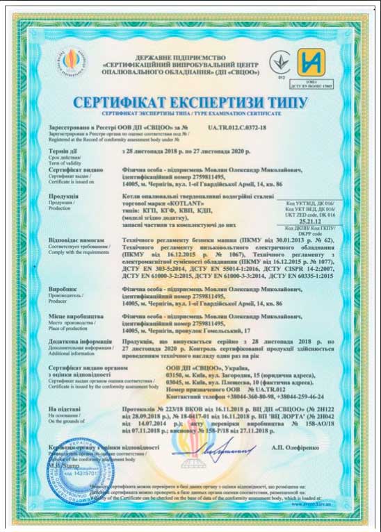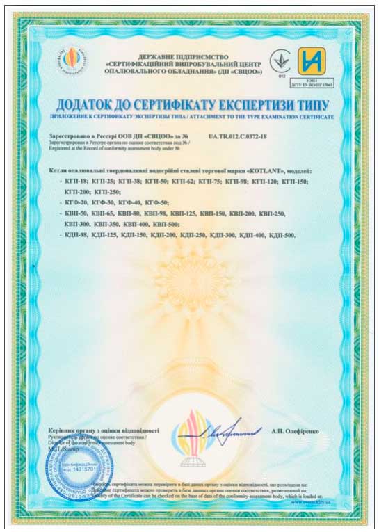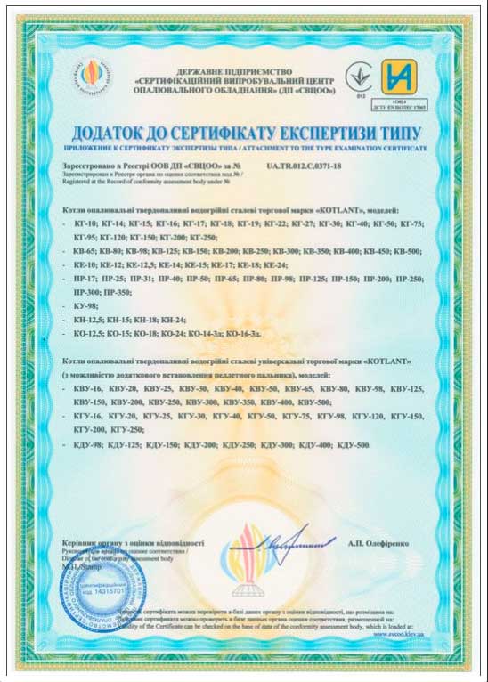 Сертифікатия якості на твердопаливні котли Котлант